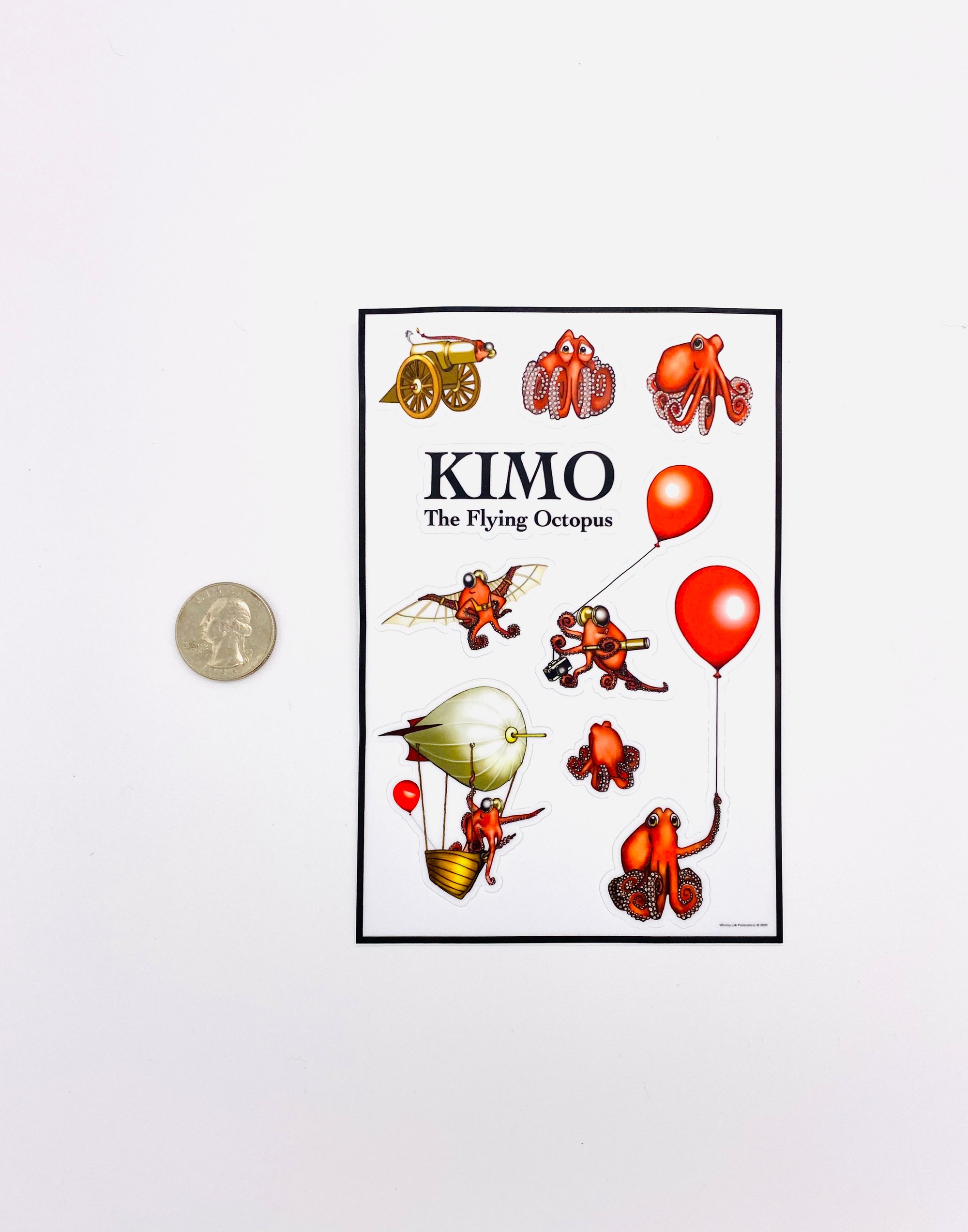 4” x 6” vinyl sticker sheet featuring art from “KIMO The Flying Octopus”.